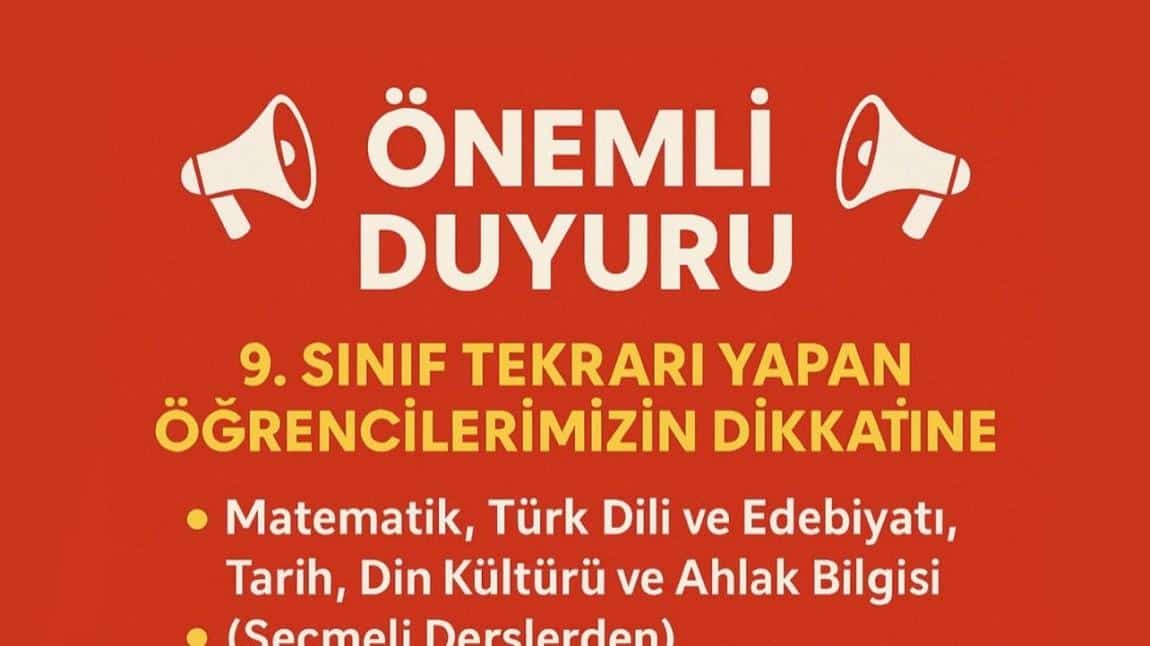 9. SINIF TEKRARINA KALAN ÖĞRENCİLERİMİZİN DİKKATİNE!!!